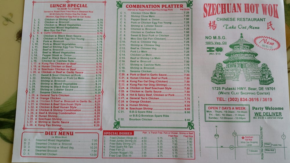 Welcome to Szechuan Hot Wok, where the vibrant flavors of Chinese cuisine come alive! Situated at 1725 Pulaski Hwy, Bear, DE, this culinary gem offers a delightful menu that showcases the bold, spicy notes characteristic of Szechuan dishes.